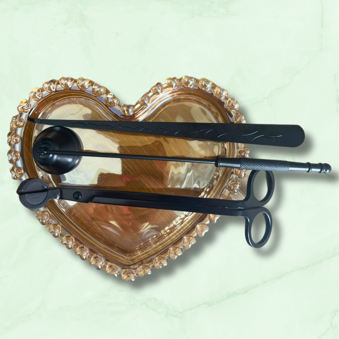 - O kit extintor de velas acompanha o aparador de pavio para aparar todas as vezes que for acender sua vela, uma pinça para retirar a sujeira que acaba caindo na vela no momento do corte do pavio e o abafador para você apagar as suas velas.